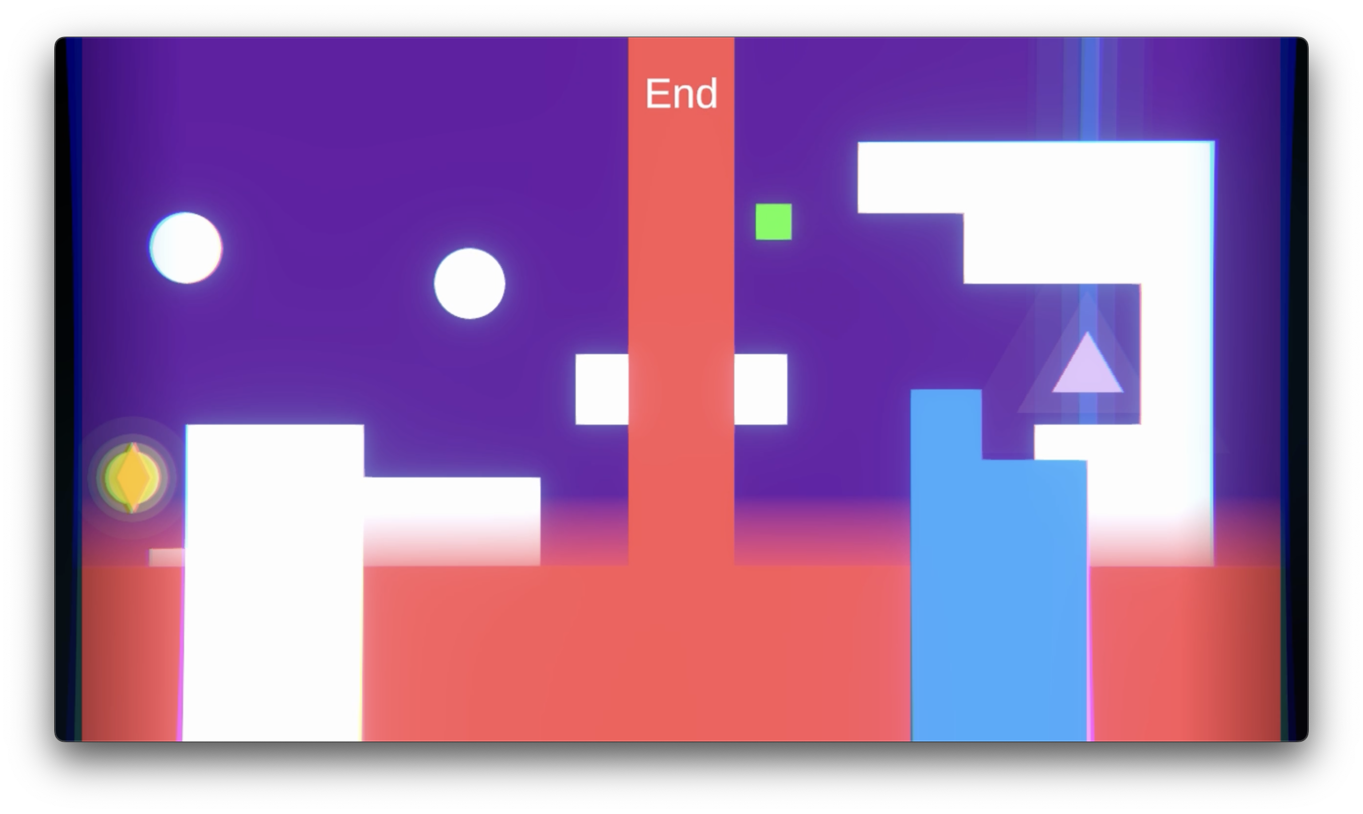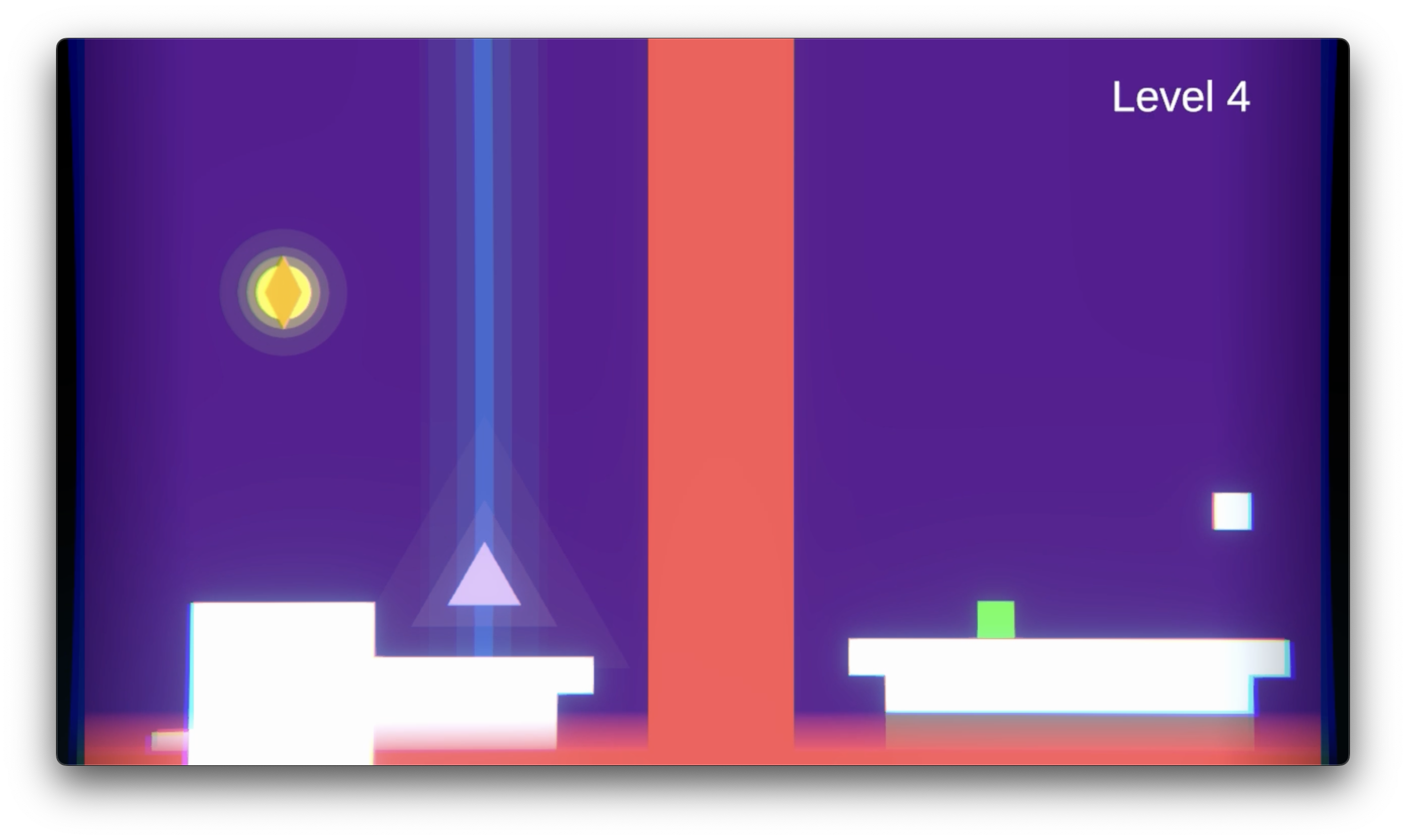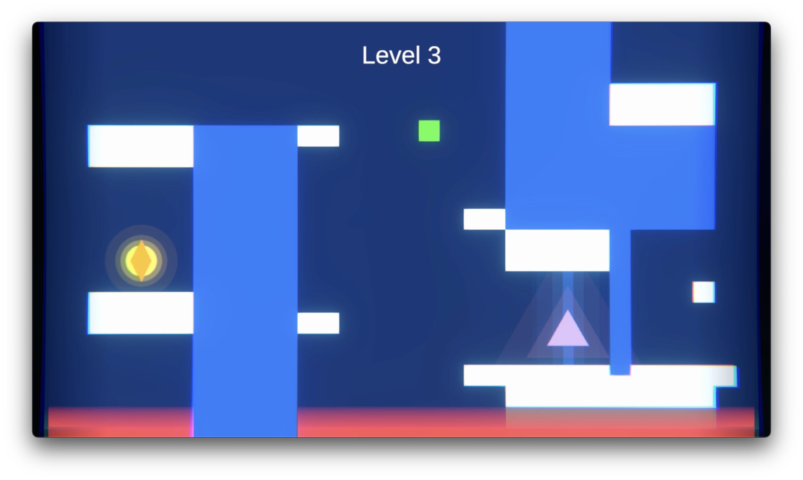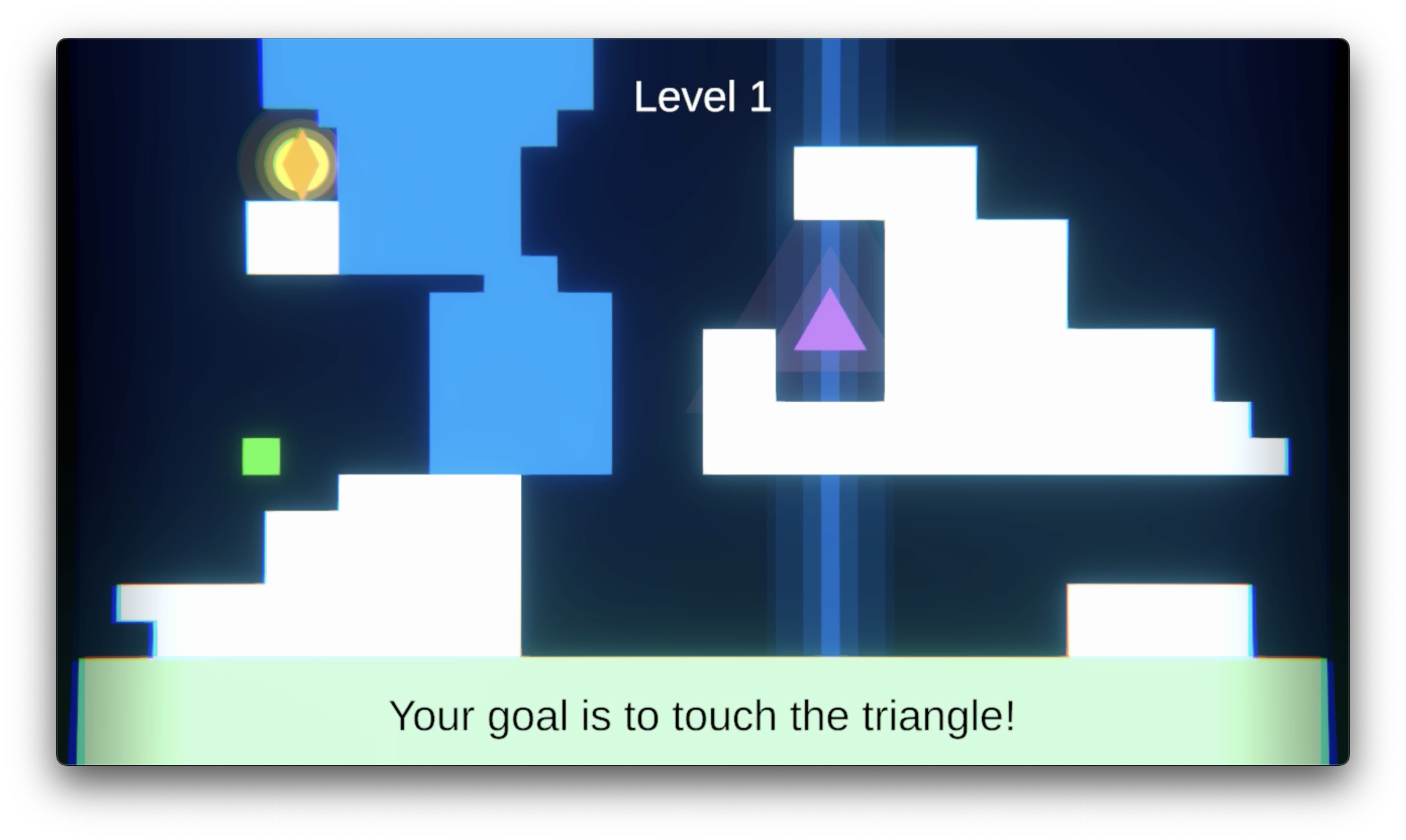 - The purple triangle is your goal in each level, jump around and loop through the screen to reach the triangle.