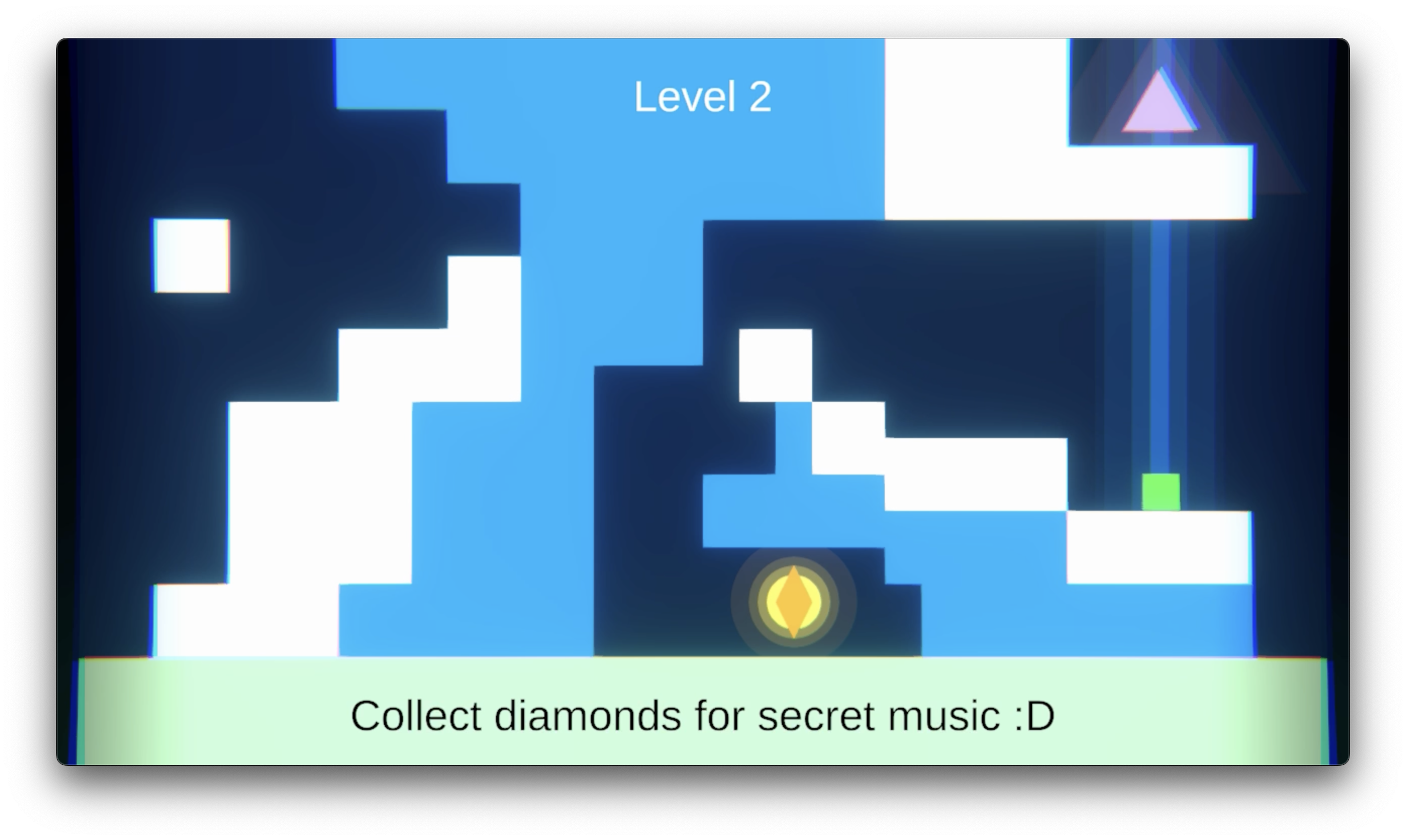 - The yellow diamonds are bonus coins you can collect throughout the game! Collect all 5 to get a secret music track when you loop back to the menu.